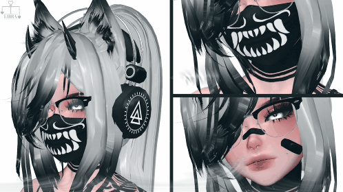 - Accessories : Headphones, Mask (design can be toggled off), Glasses (they flip up!), Blindfold, Bandaids, and Gloves
